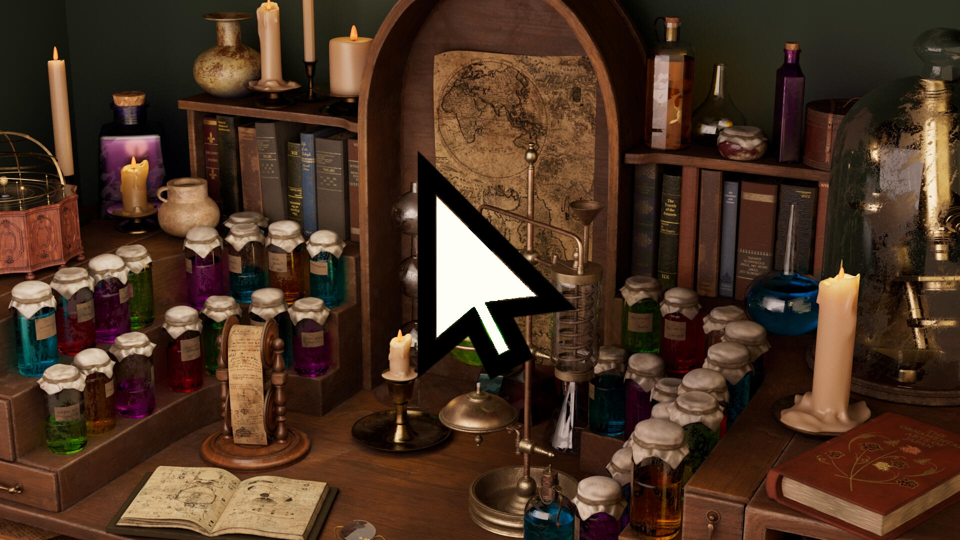 An atmospheric alchemist’s workspace built from scratch entirely by me — from reference gathering and scene composition to modeling, UVs, texturing, and lighting.
