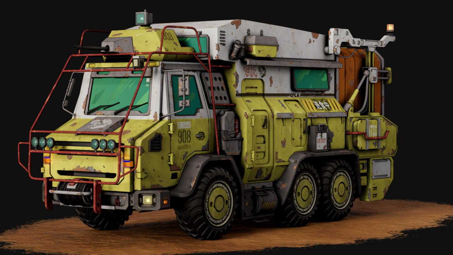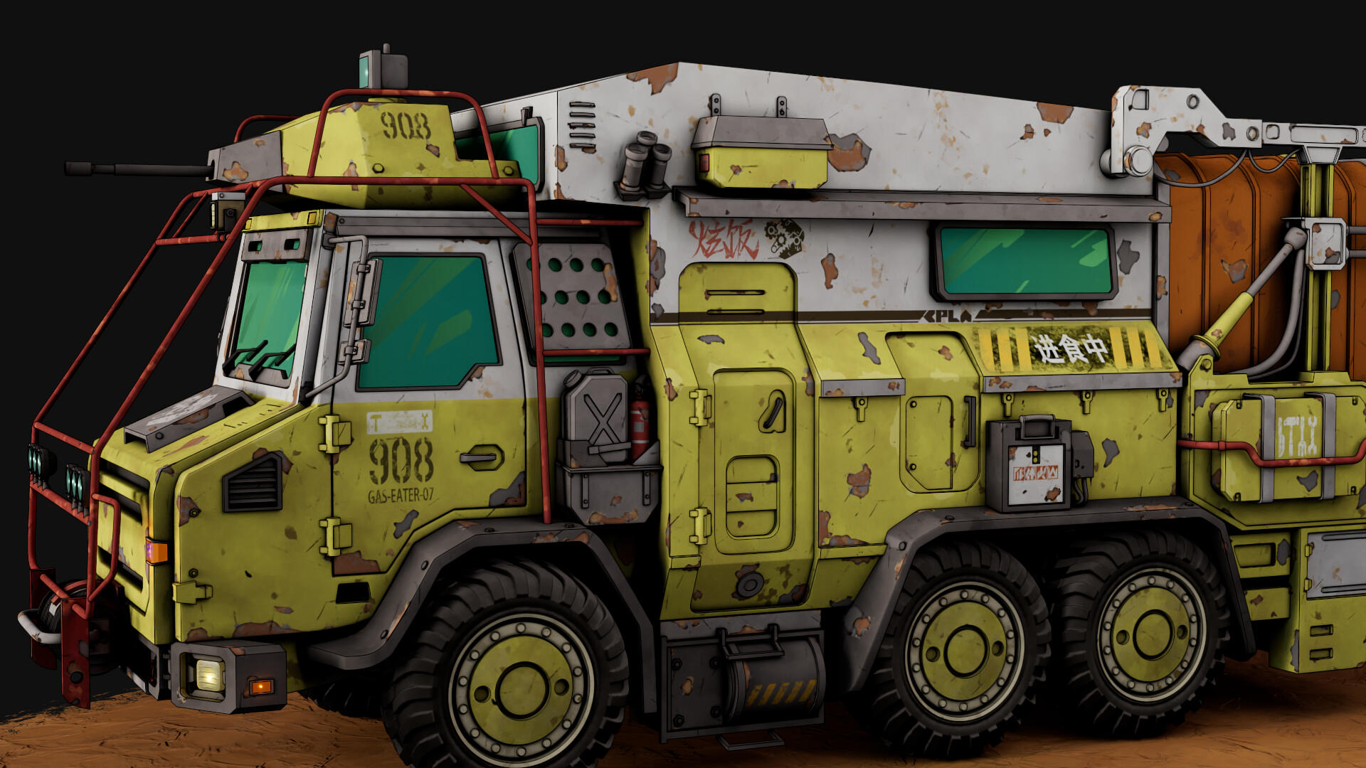 A hard-surface vehicle modeled based on a concept art by Shengyi Sun (GASONE 晟一), created to explore a more stylized look and demonstrate versatility across styles. I handled the full production process — from modeling and UVs to texturing and rendering — with a hand-painted, 2D-inspired aesthetic in mind.